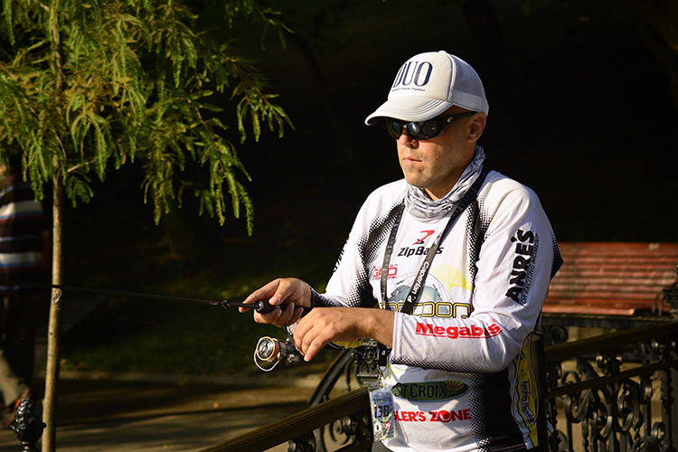Изтеглих номер 13B. Това означаваше, че в началото тактиката ще се определя от съотборника ми. Надявах се той да избере по-активно движение. Жребият ми определи за съотборник Андрей, който говореше много добре английски. Започнахме да ловим. Водата бе мътна с видимост около 15-20см. Дълбочината около метър-два като имаше и трева по дъното. Редувах главиняр с Ryuki MDF но без никакъв резултат. Смених с малък силикон с 0.75гр глава - резултатът същия. За моя радост се движехме ритмично - няколко замятания, преместване, няколко замятания преместване. Все още беше хладно, но се очакваше да стане горещо и с Андрей се разбрахме, че трябва да търсим по-големи дълбочини.