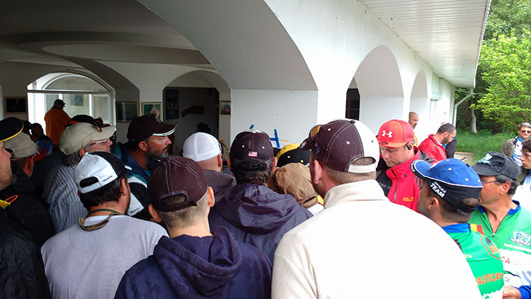 На брега вече се виждат повече лодки и хора. Оказа се, че ни няма в списъка и се регистрираме в последния момент. Получаваме състезателен номер от спининг лигата им - 109. 109! В техния шампионат от лодка има над 100 отбора! За конкретния етап сме записани под номер 58. 58! Колкото и да е голямо езерото 58 лодки, които глисират напред назад са нещо сериозно. Пресата и конкуренцията ще бъдат големи. Митко изтегля номер 20. Това е добре. И в двата дена ще тръгнем някъде в средата и ще имаме шанс да заемем добри позици. Аз обаче съм притеснен. Главата ме боли зверски, избива ме студена пот - всички признаци на настинка (ще ви спестя другите симптоми). Хубаво си мислех да сложа някое прахче Парацетамол в багажа, но уви.